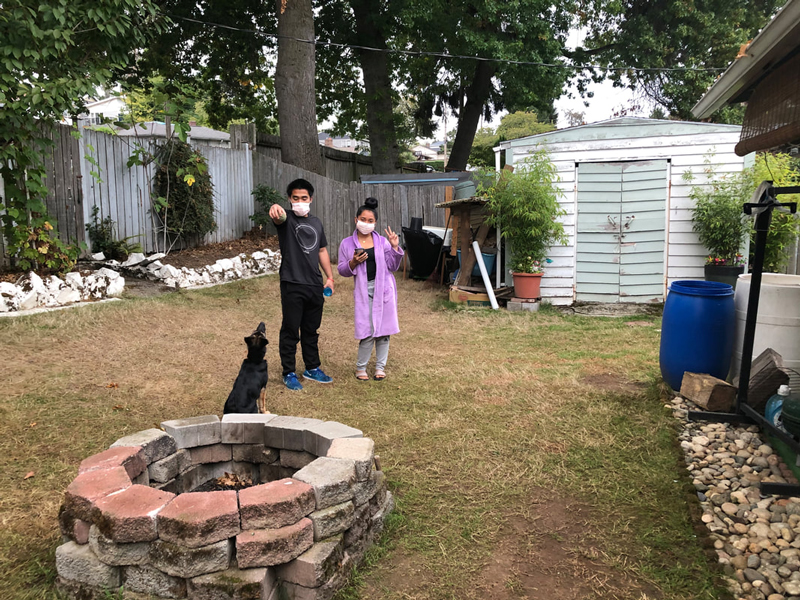 Bonding, 2020. “That’s my kids, and that’s their dog, Ako. They move on and they’re happy now. They are wearing the mask. It’s just like dog is like a medicine. And they move on.” —L.R. Photo courtesy of L.R.