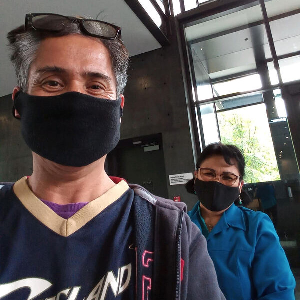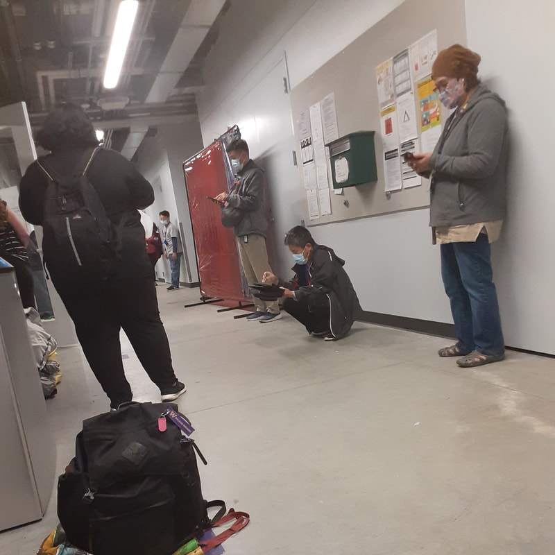 Concentrate, 2020. “They are so nice. They are concentrating, about to log in their phone their time. I take that picture to … always remind me how to do … the time for login. Related to my health is the distancing. And we wear mask too.” —A.R. Photo courtesy of A.R.