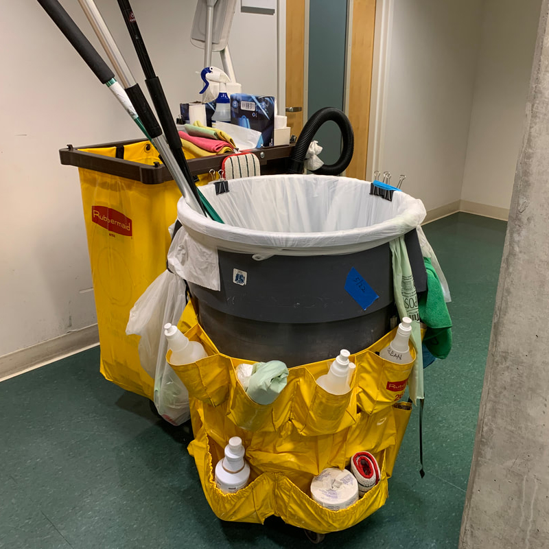 I’m So Proud To Be a Custodian, 2020. “You know what, honestly, I’m so proud to be a custodian. And I really like it. I’m trying to show that I’m a custodian. And I’m so proud. I’m trying to do my best that I’m doing my job. All my PPE, all I need is [in my cart], and everything is complete.” —L.R. Photo courtesy of L.R.