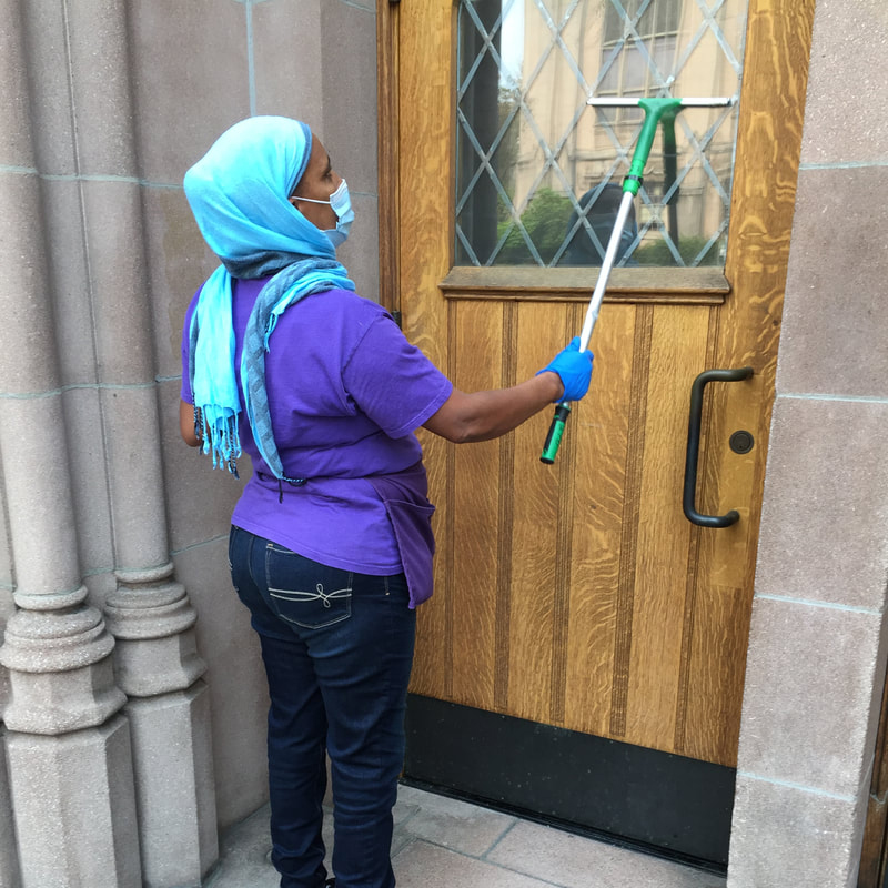 Window Door, 2020. “Squeezer. She clean the window [of the] door. Because that’s our job. I like it, to clean. I’m very happy. That’s my job.” —Mihret Dessu Photo courtesy of Mihret Dessu.