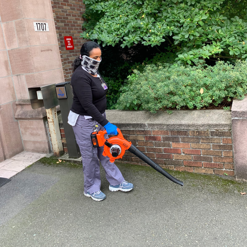 Blower, 2020. “Elsa is hard worker. She blowing outside. Because when you blow outside, the inside [of the building] keep clean. Safe for inside, that’s why I like it.” —R.M. Photo courtesy of R.M.