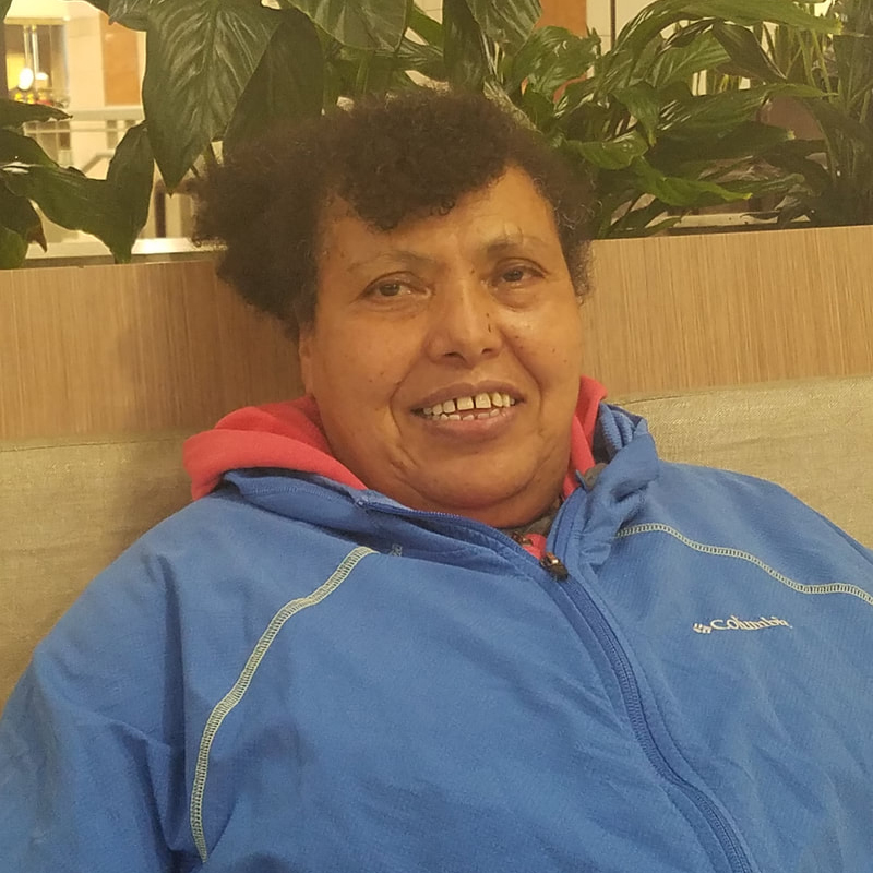 For Memory, 2020. “I am eat [at the mall], with a flower. That’s why I do it. My body relax is good. Sometimes, I’m off Saturday, Sunday. And boring [at] the house. [My son says,] ‘OK, go mama,’ with the little bit of walk.” —Leteberhan Zewdie Photo courtesy of Leteberhan Zewdie .