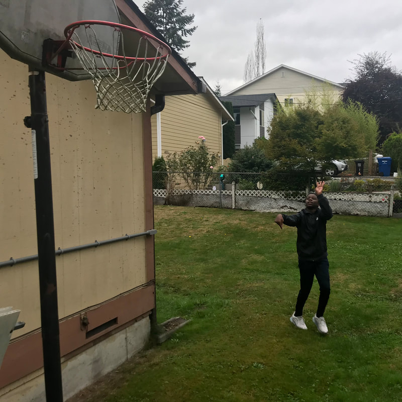 Baskets, 2020. “That particular basket is on the side of his auntie and uncle’s house … we don’t play the game as much, but I’ll take time to shoot baskets or have my son shoot baskets, and that gives us some physical activity and something that we do together. As … son and father, you know.” —T.W. Photo courtesy of T.W.