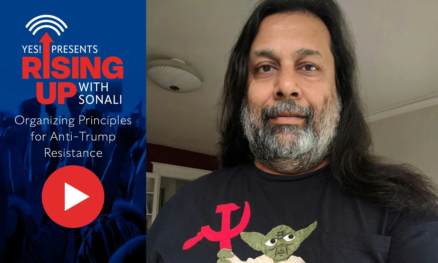 Gupta has written for The Washington Post, The Nation, The Daily Beast, Raw Story, The Guardian, and other publications. He is also helming Apocalypse Chow, a new bi-monthly column for YES! Gupta spoke with YES! Senior Editor Sonali Kolhatkar on YES! Presents: Rising Up With Sonali about how we can use his proposed principles to effectively organize against Trumpism.